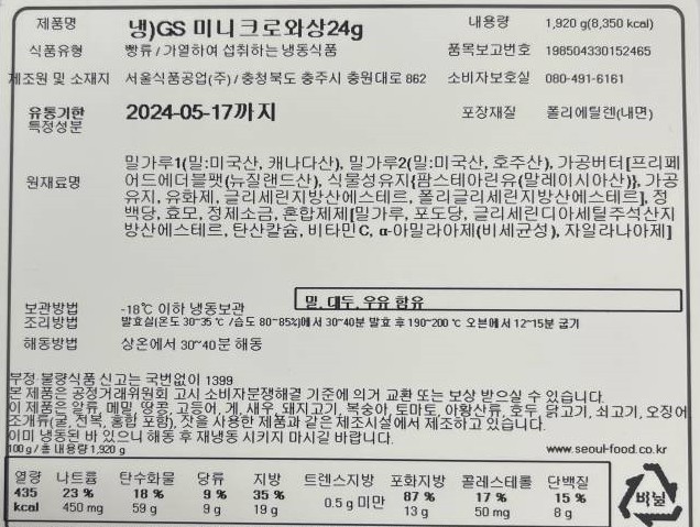 서울식품 GS미니크로와상냉동생지24g x 80개입 크로플/크룽지